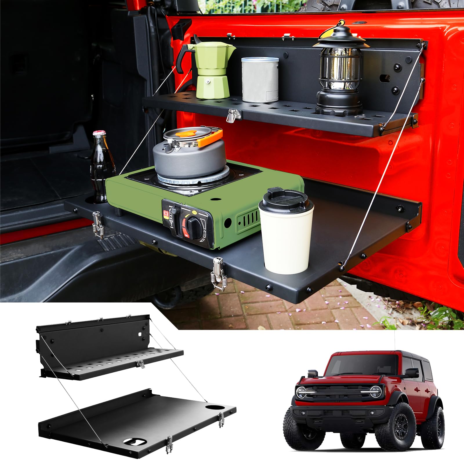 Ford Bronco Tailgate Table — Heavy-Duty Alloy Steel, Double-Layer Molle Rear Door Table Fits 2021-2025 Bronco (2-Door &